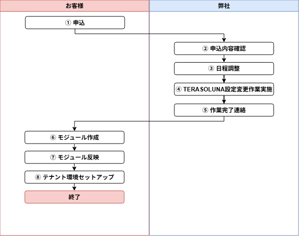| ① | 申込 | お客様 | 「変更申込Webフォーム」経由でTERASOLUNA変更を申込ください。
